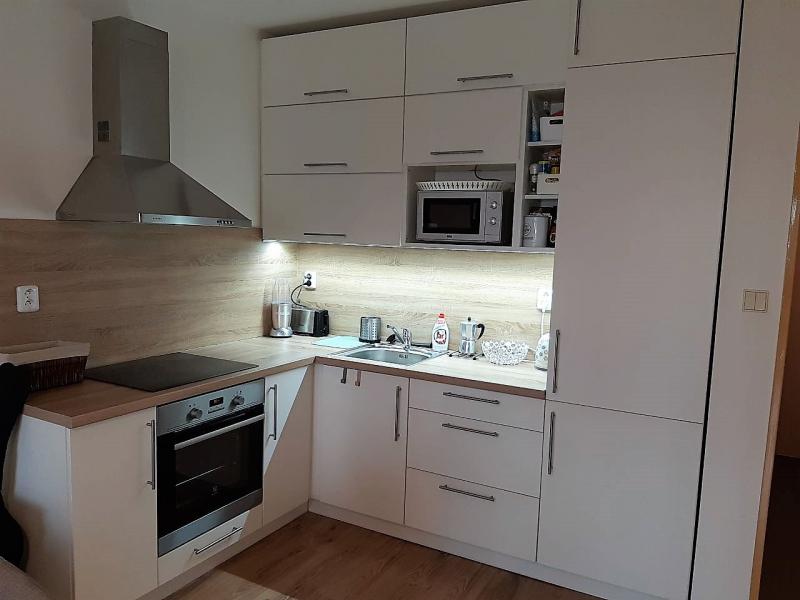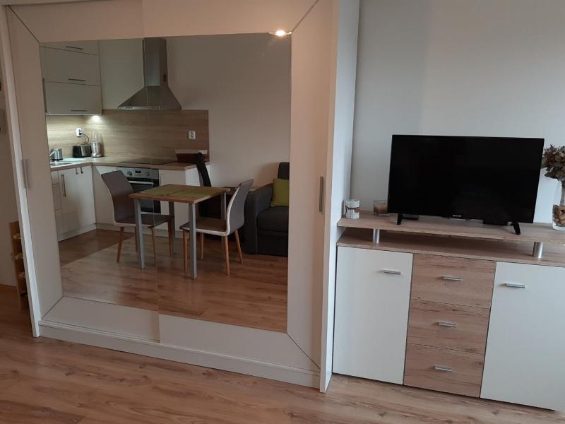 Byt 1+kk s balkonem se nachází v 4. patře novostavby v Jeronýmově ulici v sousedství Home Credit Arény. Byt byl v loňském roce kompletně nově zrekonstruován: nová plovoucí podlaha, nová kuchyňská linka s vestavěnými spotřebiči (lednička, sklokeramická varná deska, elektrická trouba, digestoř). V ceně bytu je veškerý nábytek - vše nové. Byt je velmi přijemný, je vkusně zařízen. Balkon je orientován na jižní stranu. K bytu patří sklepní kóje.