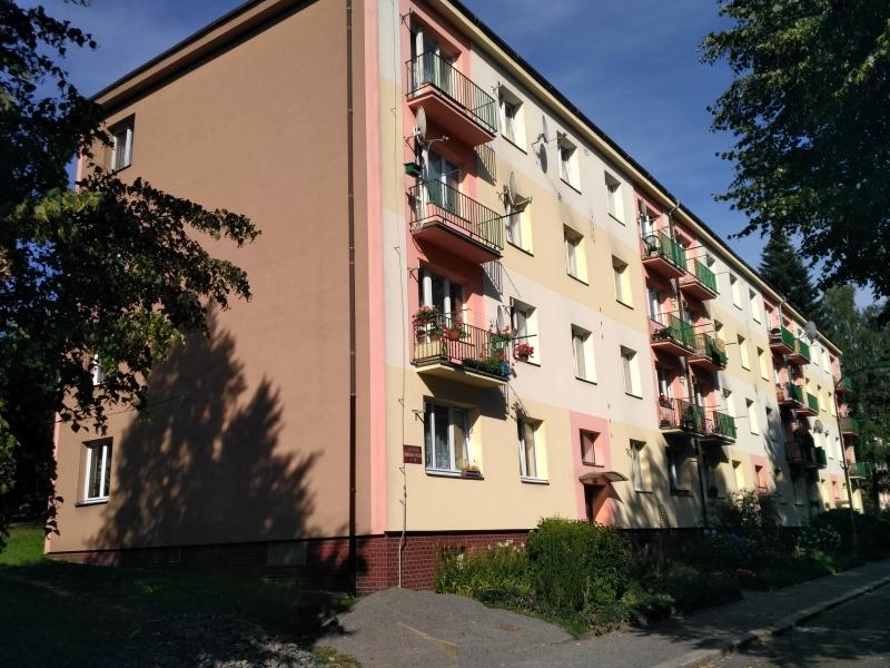 Byt 2+1 o výměře 55,4 m2 se nachází v 2. nadzemním podlaží cihlového bytového domu v ulici SNP v příjemné lokalitě Králova Háje. V bytě jsou plastová okna, jinak je v původním stavu. Dům je zateplen, má novou fasádu a střechu. Byt sestává z předsíně, kuchyně, obývacího pokoje, ložnice, koupelny a WC zvlášť. K bytu patří sklepní kóje. K dispozici je balkon v mezipatře (slouží pro 2 byty) a sušárna.