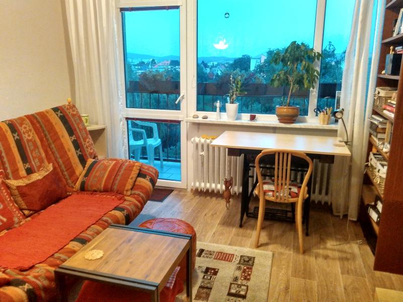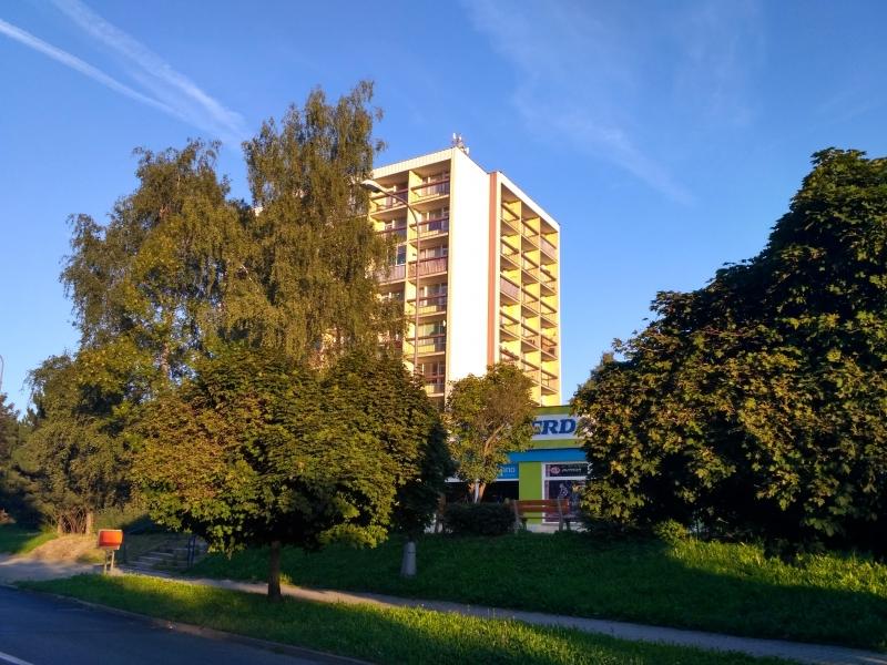 Byt 2+kk s dvěma lodžiemi je situován v 7. nadzemním podlaží (předposlední) panelového domu na konci Jáchymovské ulice (okraj sídliště). Výměra bytu je 46 m2 + lodžie 7 m2 + sklepní kóje. Byt je po kompletní rekonstrukci. Sestává z prostorné kuchyně, obývacího pokoje (opticky rozdělen a obývací část a ložnici), šatny, koupelny s WC, předsíně a 2 lodžií. K bytu patří 2 sklepní kóje. Dále je k dispozici komora společná pro byty na patře. Z bytu je krásný výhled. Nízké měsíční náklady.