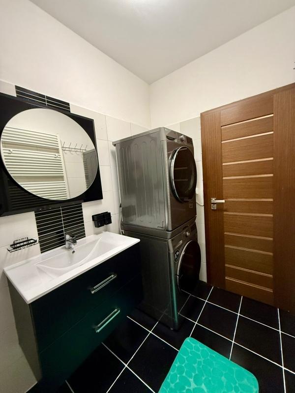 K bytu je možné si pronajmout garáž o výměře 17 m2 přímo v domě, a to za nájemné 3500,-Kč měsíčně. Získáváte tak další parkovací místo před garáží. Vrata jsou dálkově ovládaná, na stěně jsou praktické držáky na 3 jízdní kola. Podlaha je vylitá a vyspádovaná. Vstup do domu je možný přímo z garáže.