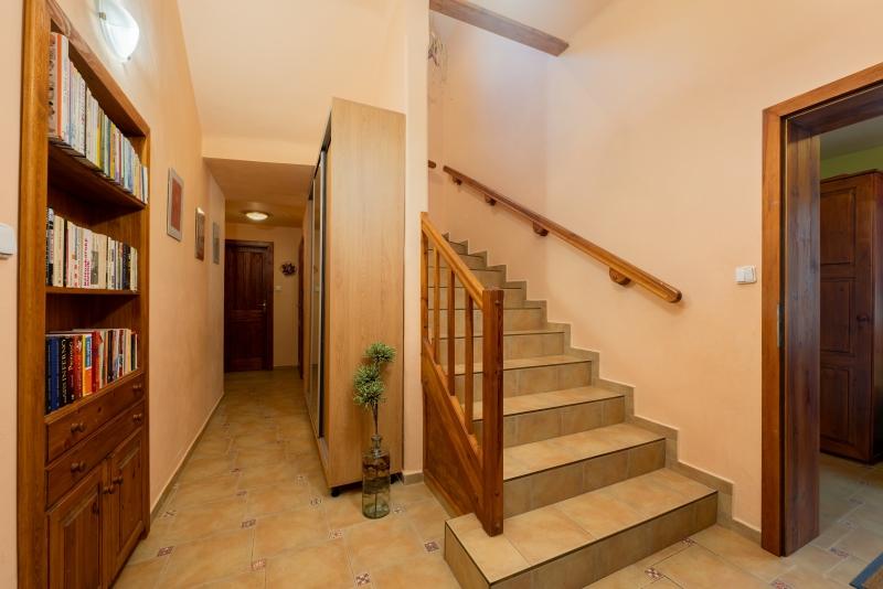 V přízemí se nachází kuchyň s jídelnou, obývací pokoj, ložnice, koupelna, WC a komora. Na jídelnu navazuje terasa, kterou majitelé vybudovali před 2 lety společně s předokenními žaluziemi a markýzou. V patře najdete 2 ložnice a vstup na půdu.