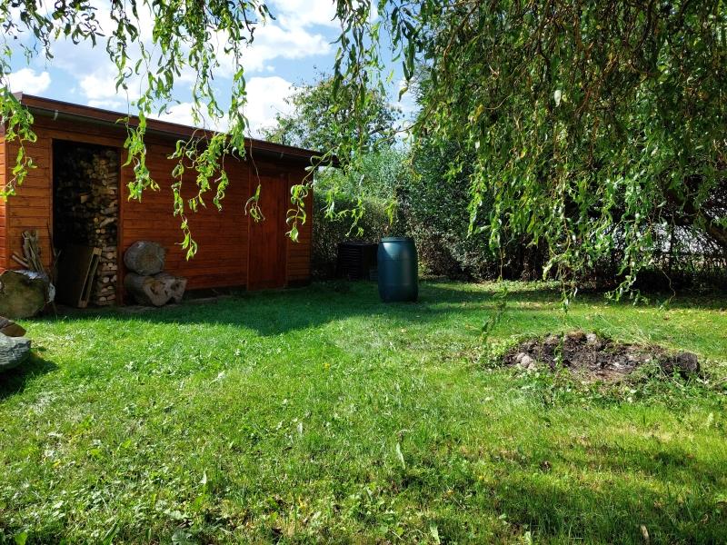 Upravená rovinná zahrada s okrasnými a ovocnými stromy a keři poskytuje prostor pro aktivní odpočinek, lenošení i posezení s rodinou a přáteli. Nechybí tu praktický dřevník, foliovník či nový zahradní domek. Pohodlný příjezd vám umožní pojezdová vrata. Parkovací plocha pojme s přehledem 3-4 vozy.