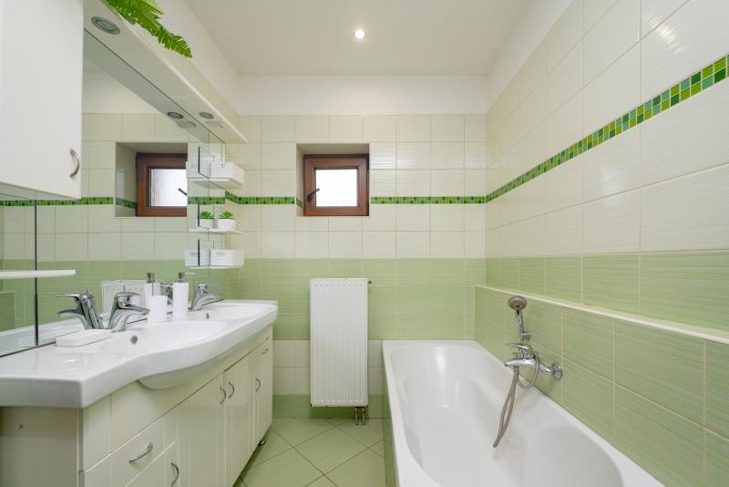 Dům je vytápěn plynovým kotlem. Nový kotel byl pořízen před 5 lety. Dalším zdrojem tepla jsou kvalitní kamna na dřevo s litinovou vložkou a žáruvzdorným keramickým obkladem. Dům je napojen na všechny inženýrské sítě: vodu, elektřinu, plyn, kanalizaci. Na splachování lze použít vodu ze studny.