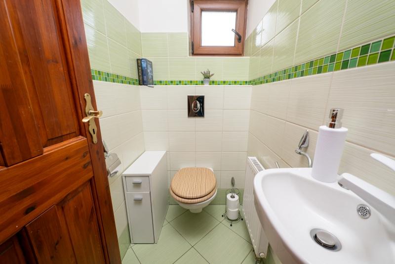 V přízemí se nachází kuchyň s jídelnou, obývací pokoj, ložnice, koupelna, WC a komora. Na jídelnu navazuje terasa, kterou majitelé vybudovali před 2 lety společně s předokenními žaluziemi a markýzou. V patře najdete 2 ložnice a vstup na půdu.